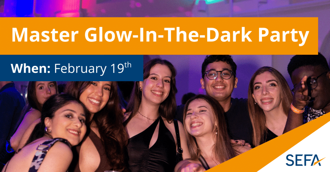 We’re throwing a party to help you take a break from the books and connect with fellow Master’s students. We’ll have a glow station set up with everything you need for the glow in the dark theme – glow sticks, face paint, the works – so just show up and we’ll handle the rest.